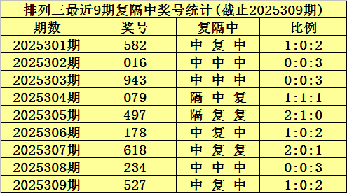 陈青峰排列三第2025310期推荐: